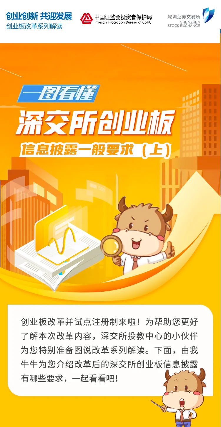 為幫助投資者加深對創業板改革并試點注冊制的認識和理解,深交所投資者教育中心特別推出圖說改革系列解讀。本篇介紹改革后創業板信息披露相關要求,一起來了解一下吧!