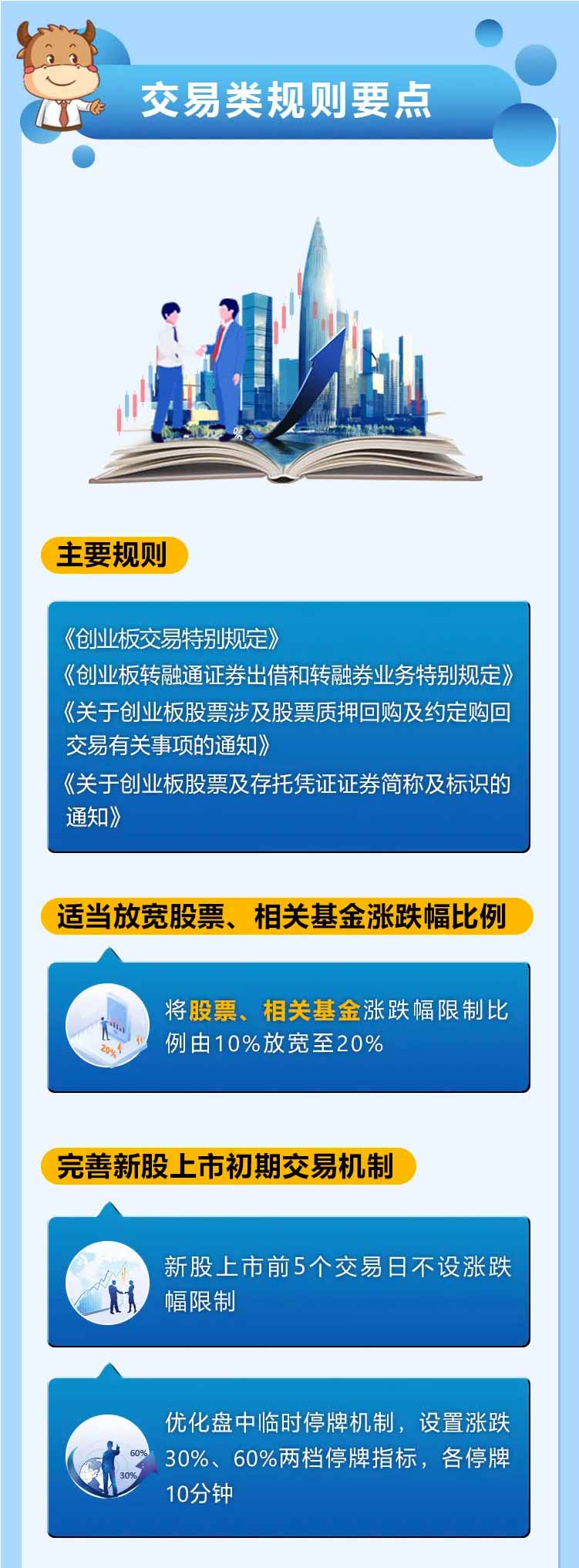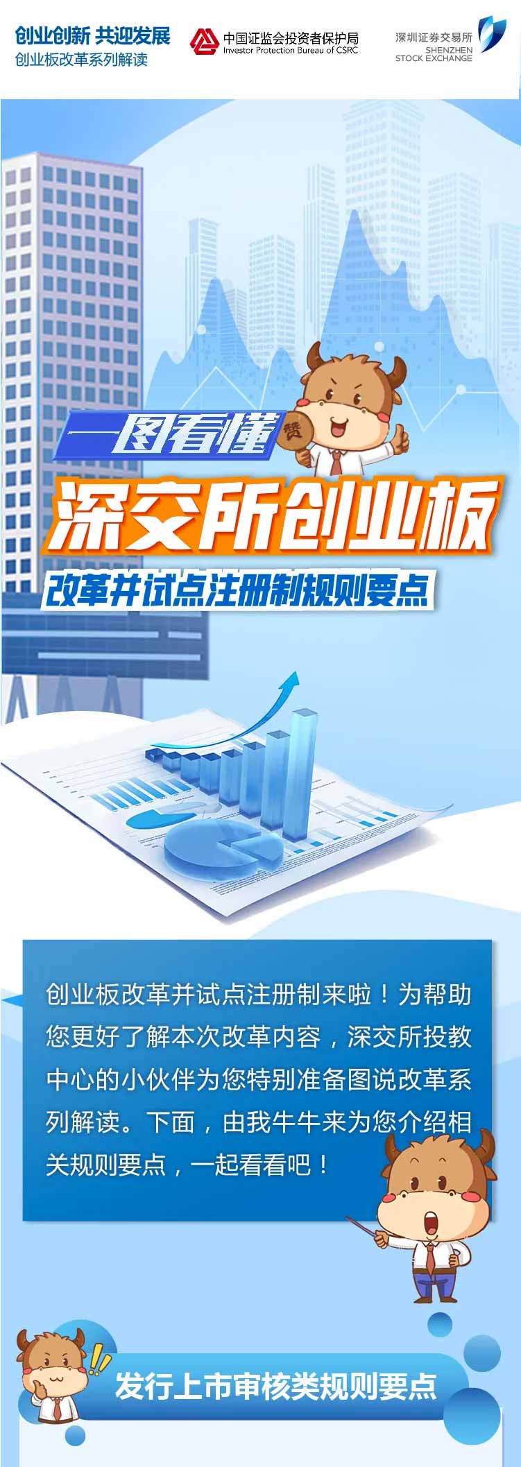 為幫助投資者加深對創(chuàng)業(yè)板改革并試點(diǎn)注冊制的認(rèn)識和理解,深交所投資者教育中心特別推出圖說改革系列解讀。本篇介紹上市審核類、發(fā)行承銷類、交易類、持續(xù)監(jiān)管類主要規(guī)則及要點(diǎn),一起來了解一下吧!